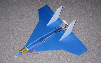 Hinrik Schulte (FMT Autor) hat in einem seiner Bücher ein ähnliches Depron-Delta beschrieben. Und da ich doch großen Spaß an kleinen Elektrojets habe, musste ich auch so eins bauen. Herausgekommen ist diese Eigenkonstruktion mit Eigen-Umbau-CD-ROM-Motor. Ein recht agiles Teil, das auf Anforderung auch senkrecht steigt. Um es fliegen zu können, sollte man schon Übung mit vergleichbaren Minijets haben. Keine Empfehlung für Anfänger, aber doch gut fliegbar. Für die Halle leider zu schnell.
